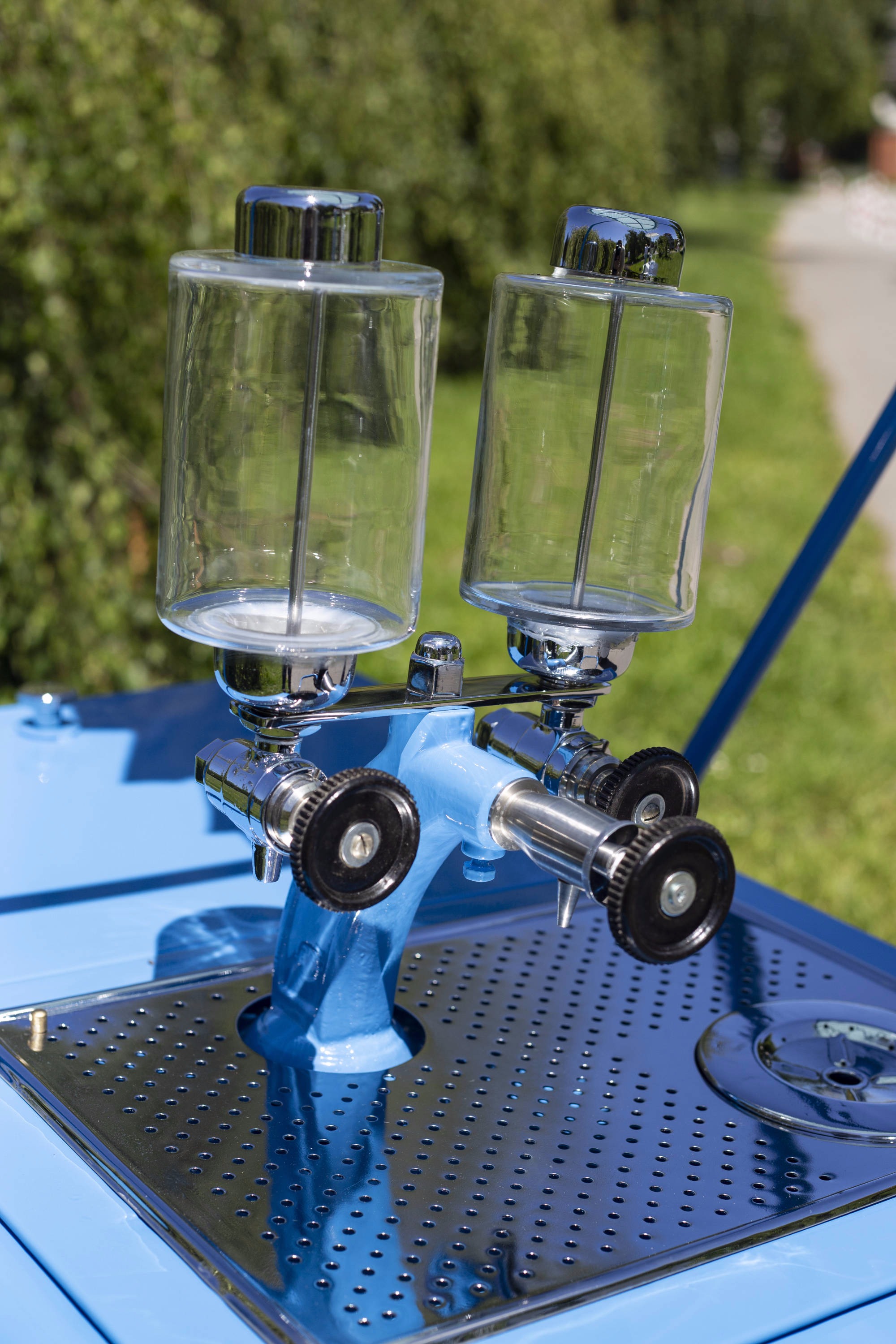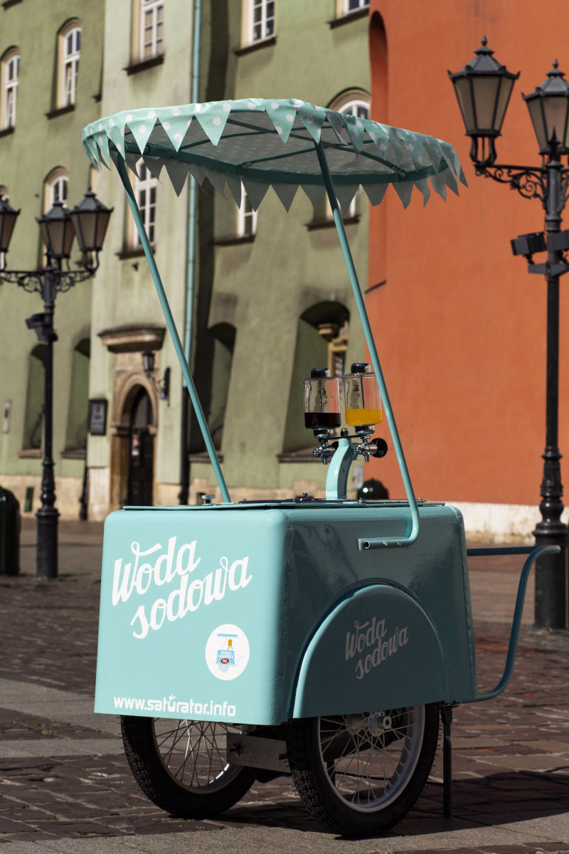 Odnalezliśmy oryginalne urządzenia z lat 60-tych i 70-tych XX-wieku, następnie przeprowadziliśmy gruntowną ich renowację zachowując pierwotny wygląd, oryginalne elementy wyposażenia. Jednocześnie stawiając jako priorytet jakość serwowanej wody sodowej wymieniliśmy na nowe wszelkie uszczelki, węże, zbiornik wodny odnowiliśmy poprzez pokrycie go specjalistyczną powłoką przeznaczoną do kontaktu z wodą pitną. Szklanki wielokrotnego użytku zastąpiliśmy jednorazowymi kubkami papierowymi. Finałem tych naszych starań było uruchomienie tego wyjątkowego urządzenia.