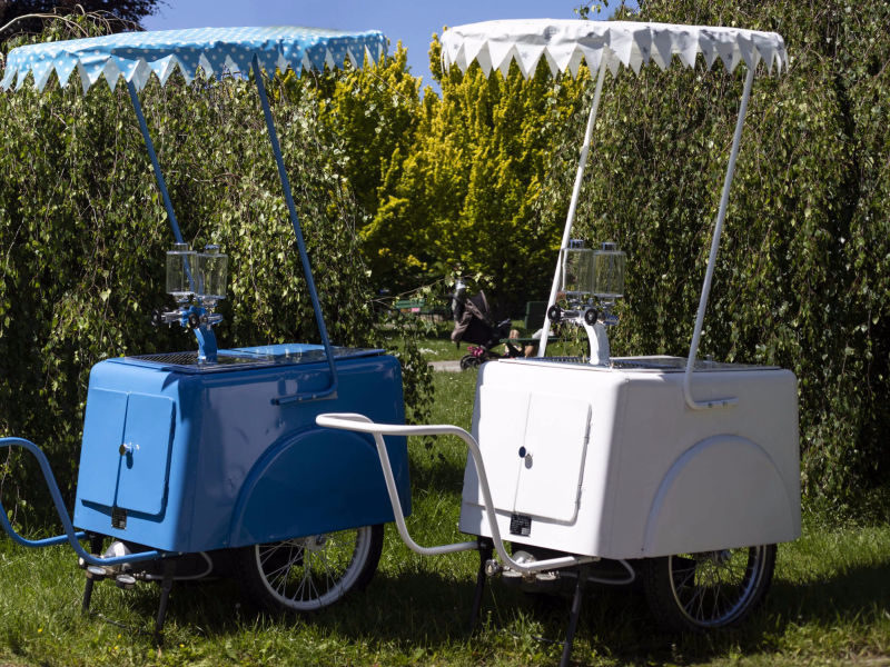 - wózka na dwóch kołach motorowerowych, z aparatem do saturacji i szafką